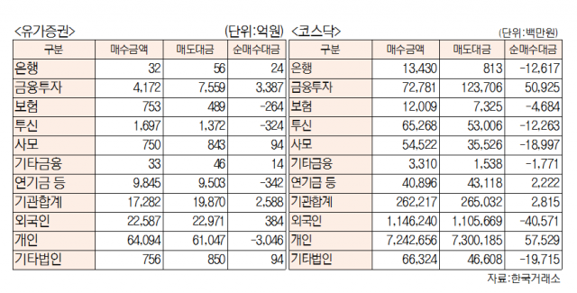 [표]유가증권 코스닥 투자주체별 매매동향(10월 25일-최종치)