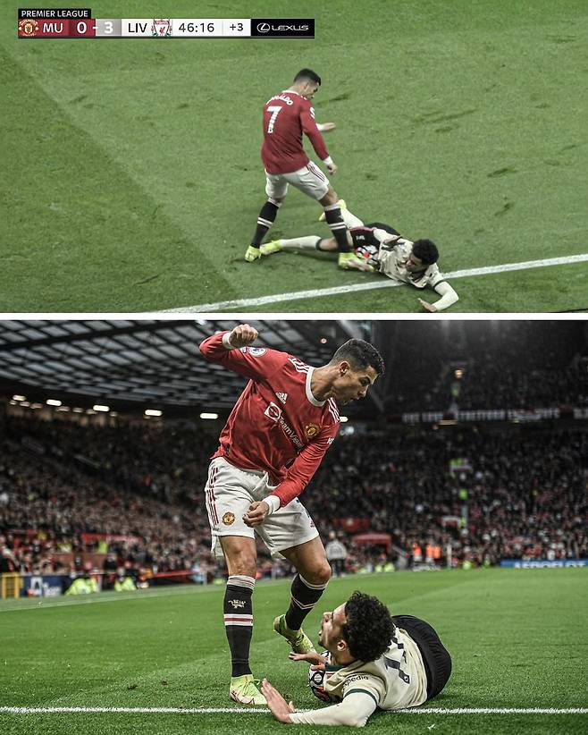 크리스티아누 호날두(맨체스터 유나이티드)가 리버풀전에서 존재감은 경기력이 아닌 비매너로 드러냈다.