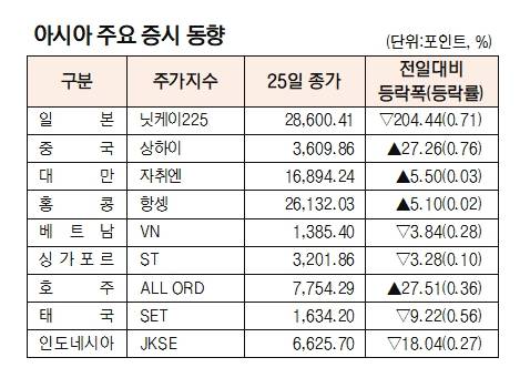 [표]아시아 주요 증시 동향(10월 25일)