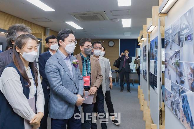 [이데일리 김태형 기자] 채현일(왼쪽 두번째) 영등포구청장이 25일 하이서울 유스 호스텔에서 열린 ‘제4회 영등포 건축 문화제’ 개막식에 참석해 영등포 건축문화의 전시물을 살펴보고 있다.