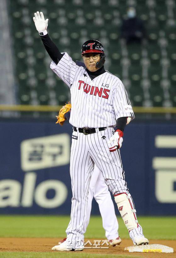 2021프로야구 KBO리그 LG트윈스와 롯데자이언츠의 경기가 25일 오후 서울 잠실야구장에서 열렸다. 6회말 1사 만루 채은성이 역전 3타점 적시2루타를 치고 기뻐하고 있다.