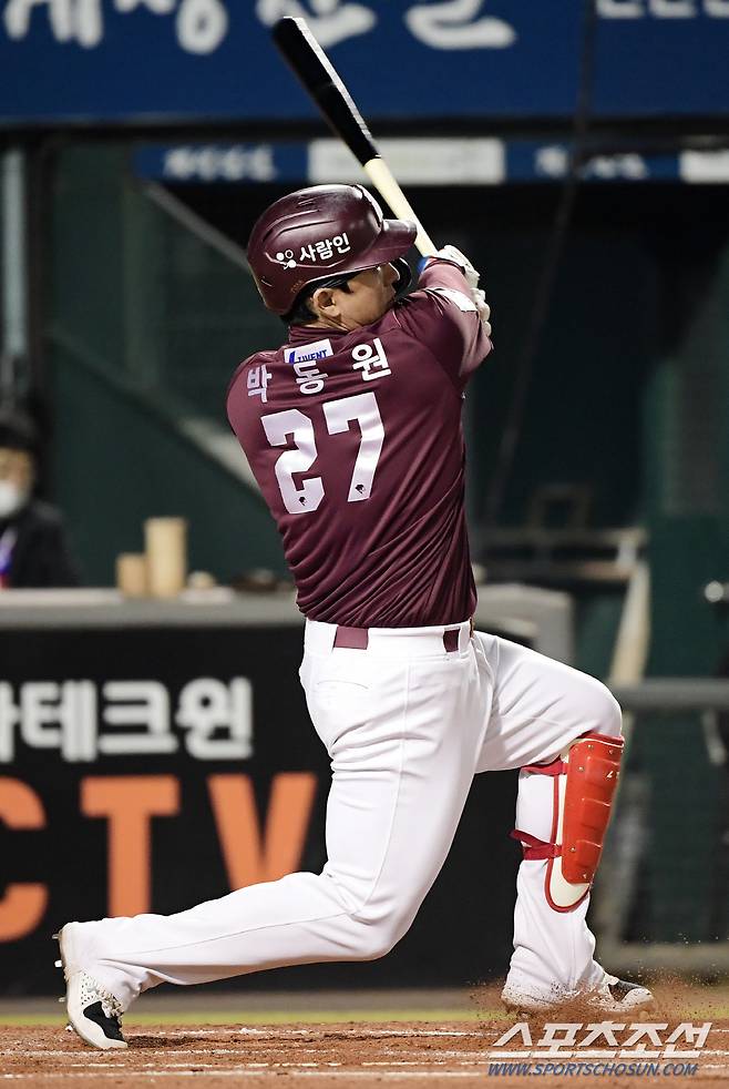 25일 대전 한화생명이글스파크, KBO리그 키움과 한화 경기. 6회초 1사 2루 대타 박동원이 1타점 2루타를 치고 있다. 대전=정재근 기자 cjg@sportschosun.com/2021.10.25/