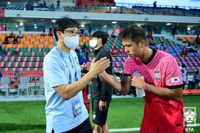 23세 이하(U-23) 대표팀의 지휘봉을 잡은 황 감독은 25일 싱가포르의 잘란 베사르 스타디움에서 열린 필리핀과의 2022 아시아축구연맹(AFC) U-23 아시안컵 예선 H조 1차전에서 팀을 3대0 승리로 이끌며 서전을 승리로 장식했다. 필리핀전은 황 감독의 대표팀 사령탑 데뷔전이었다.