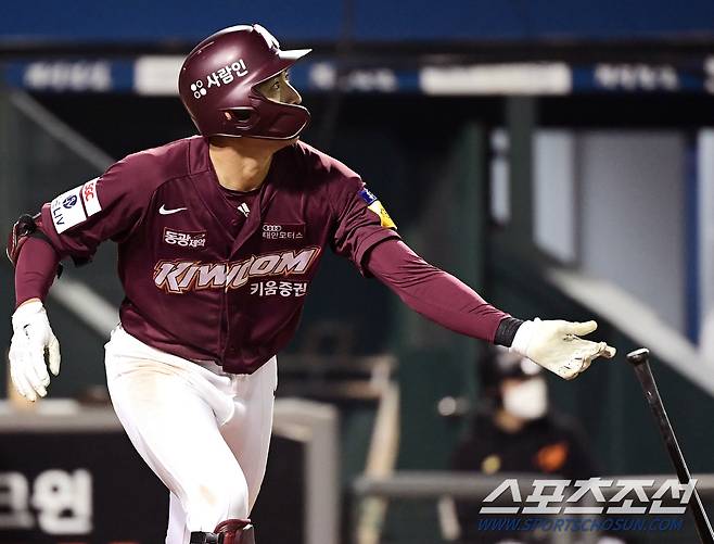 25일 대전 한화생명이글스파크, KBO리그 키움과 한화 경기. 6회초 1사 만루 이정후가 싹쓸이 2루타를 친 후 타구를 바라보고 있다. 대전=정재근 기자 cjg@sportschosun.com/2021.10.25/