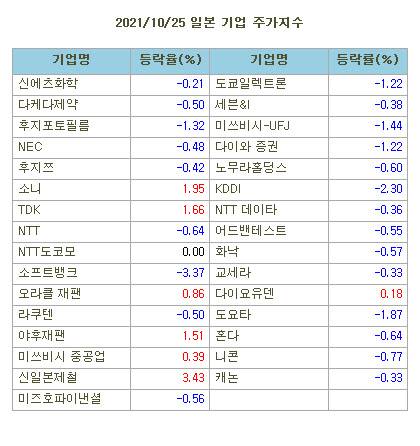 [표]일본 주요기업 주가(10/25)