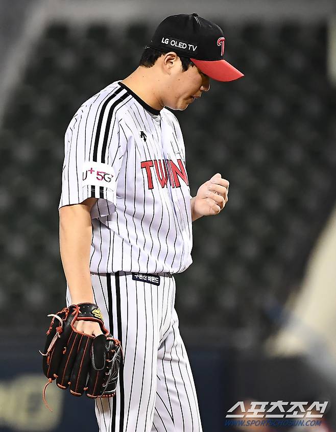 2021 KBO리그 LG 트윈스와 롯데 자이언츠의 경기가 25일 잠실구장에서 열렸다. 7회초 LG 함덕주가 숨을 고르고 있다. 잠실=박재만 기자 pjm@sportschosun.com/2021.10.25/