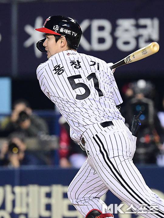 홍창기 '찬스 만든 선두타자 안타' [MK포토]