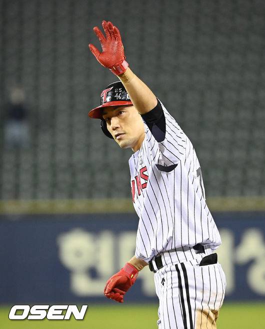8회말 무사 1루 LG 서건창이 안타를 날린뒤 세리머니를 하고 있다. 2021.10.25 / soul1014@osen.co.kr