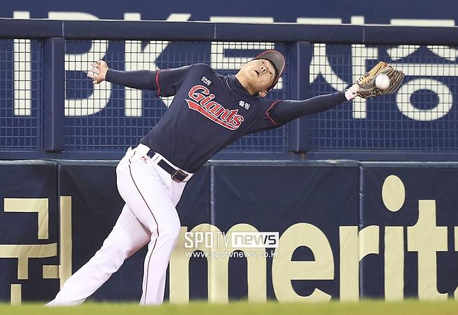 [스포티비뉴스=잠실, 곽혜미 기자] 2021 신한은행 SOL KBO리그 LG 트윈스와 롯데 자이언츠의 경기가 25일 오후 서울 송파구 잠실야구장에서 열렸다. 8회말 무사 1루 LG 서건창의 타석 때 롯데 3루수 배성근이 파울 타구를 놓치고 있다.