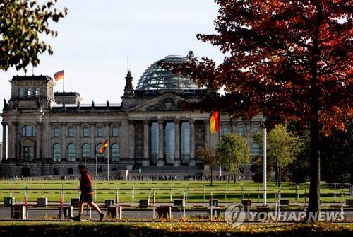 epa09545282 View shows autumn colour trees next to Reichstag building, the seat of the German parliament in Berlin, Germany, 25 October 2021. EPA/FILIP SINGER