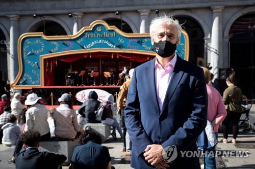 epa09545303 Teatro Real opera house's Director, Ignacio Garcia-Belenguer, poses during an event held outside the theater to mark the World Opera Day in Madrid, Spain, 25 October 2021. EPA/LUCA PIERGIOVANNI