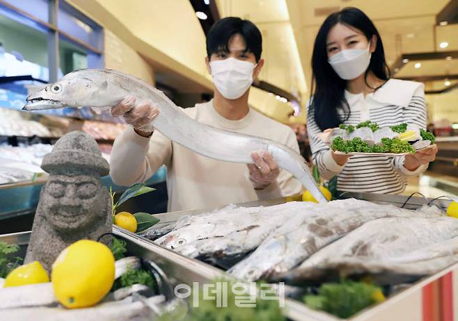 [이데일리 김태형 기자] 25일 서울 신세계백화점 강남점에서 모델들이 '제주산 갈치 할인전'을 홍보하고 있다.