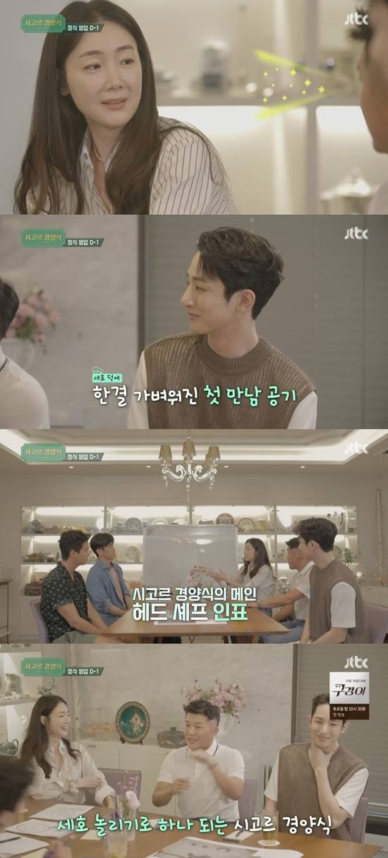 25일 방송된 JTBC '시고르 경양식'에서는 최지우, 조세호, 이수혁, 차인표, 이장우, 최강창민의 첫 만남이 그려졌다.
