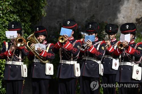 epa09545316 Honor guard musicians during the private visit of Germany's President at the Order of Malta in Rome, Italy, 25 October 2021. EPA/Riccardo Antimiani