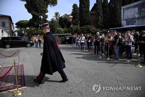 epa09545317 Tourists outside the entrance of the Villa of the Priory of Malta, or Villa Magistrale, during the private visit of Germany's President at the Order of Malta in Rome, Italy, 25 October 2021. EPA/Riccardo Antimiani