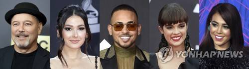 This combination of photos shows artists, from left, Rubén Blades, Nella, Ozuna, Paula Arenas and Danna Paola, who will perform at the Latin Grammy awards ceremony, the Latin Recording Academy announced Monday, Oct 25, 2021. Blades will be honored as the Latin Recording Academy’s Person of the Year 2021. (AP Photo) COMBINATION PHOTO. NO SALES.