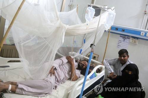 epa09545321 A Patient suffering from dengue fever receives medical treatment at an isolation ward of a government hospital in Hyderabad, Pakistan, 25 October 2021. Officials in Pakistan are reporting a continued increase in dengue fever cases, with the numbers in the thousands, and experts warn the next coming weeks will be critical. EPA/NADEEM KHAWAR