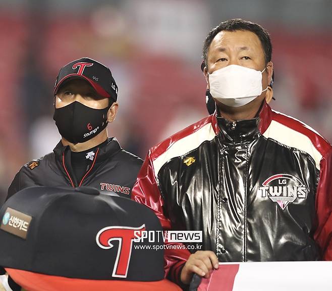 [포토S] 시즌 홈 최종전에서 팬들에게 인사하는 류지현 감독과 차명석 단장