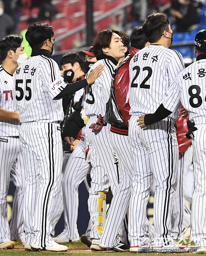 2021 KBO리그 LG 트윈스와 롯데 자이언츠의 경기가 25일 잠실구장에서 열렸다. 경기에서 4대4로 무승부를 기록한 LG 선수들이 아쉬워하고 있다. 잠실=박재만 기자 pjm@sportschosun.com/2021.10.25/