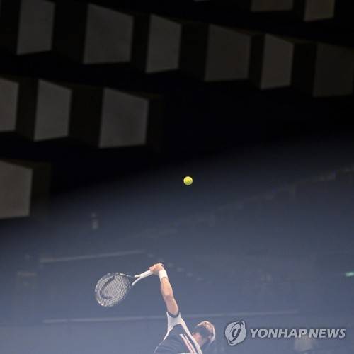 epa09545336 Nikoloz Basilashvili of Georgia in action during his first round match against Pablo Carreno Busta of Spain of the Erste Bank Open ATP tennis tournament in Vienna, Austria, 25 October 2021. EPA/CHRISTIAN BRUNA