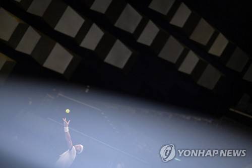 epa09545337 Nikoloz Basilashvili of Georgia in action during his first round match against Pablo Carreno Busta of Spain of the Erste Bank Open ATP tennis tournament in Vienna, Austria, 25 October 2021. EPA/CHRISTIAN BRUNA