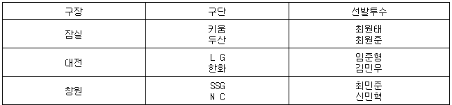 [프로야구] 26일 선발투수