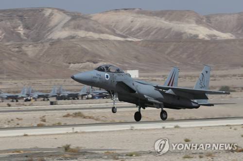 epa09545378 An Israeli F-15 aircraft takes off at the Israeli airbase of Ovda in the Negev Desert near the southern Israeli city of Eilat, Israel, during the "Blue Flag" exercise on 24 October 2021. The fifth "Blue Flag" exercise is a large-scale international aerial exercise, which takes place once every two years. The purpose of the exercise is to simulate challenging combat scenarios and coalition flight, in the most realistic way. The current exercise is the largest and most advanced exercise to date, in which eight countries participate in the practice of combining 4th generation aircraft with 5th generation (35-F) aircraft, which expands the capabilities of the Israeli Air Force on the battlefield, with air cooperation including dealings. EPA/ATEF SAFADI