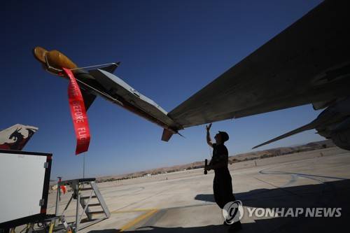 epa09545377 An Israeli F-16 aircraft technician checking the aircraft ammunition and body before take off at the Israeli airbase of Ovda in the Negev Desert near the southern Israeli city of Eilat, Israel, during the "Blue Flag" exercise on 24 October 2021. The fifth "Blue Flag" exercise is a large-scale international aerial exercise, which takes place once every two years. The purpose of the exercise is to simulate challenging combat scenarios and coalition flight, in the most realistic way. The current exercise is the largest and most advanced exercise to date, in which eight countries participate in the practice of combining 4th generation aircraft with 5th generation (35-F) aircraft, which expands the capabilities of the Israeli Air Force on the battlefield, with air cooperation including dealings. EPA/ATEF SAFADI