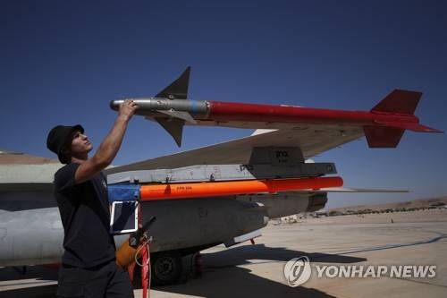epa09545386 An Israeli F-16 aircraft technician checking the aircraft ammunition and body before take off at the Israeli airbase of Ovda in the Negev Desert near the southern Israeli city of Eilat, Israel, during the "Blue Flag" exercise on 24 October 2021. The fifth "Blue Flag" exercise is a large-scale international aerial exercise, which takes place once every two years. The purpose of the exercise is to simulate challenging combat scenarios and coalition flight, in the most realistic way. The current exercise is the largest and most advanced exercise to date, in which eight countries participate in the practice of combining 4th generation aircraft with 5th generation (35-F) aircraft, which expands the capabilities of the Israeli Air Force on the battlefield, with air cooperation including dealings. EPA/ATEF SAFADI