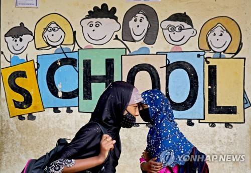 epaselect epa09545353 Students maintaining social distancing arrive to attend class at a government school in Bangalore, India, 25 October 2021. The Karnataka state government has allowed the reopening of schools from grade 1st to 5th standard from 25 October 2021, by strictly adhering to COVID-19 guidelines. Students who wish to attend school in person have to take parental consent as online teaching continues. EPA/JAGADEESH NV