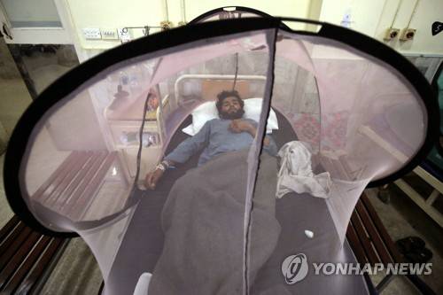 epaselect epa09545254 A Patient suffering from dengue fever receives medical treatment at an isolation ward of a government hospital in Peshawar, Pakistan, 25 October 2021. Officials in Pakistan are reporting a continued increase in dengue fever cases, with the numbers in the thousands, and experts warn the next coming weeks will be critical. EPA/BILAWAL ARBAB