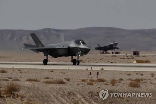 epa09545412 A Israeli 35-F aircraft landing at the Israeli airbase of Ovda in the Negev Desert near the southern Israeli city of Eilat, Israel, during the "Blue Flag" exercise on 24 October 2021. The fifth "Blue Flag" exercise is a large-scale international aerial exercise, which takes place once every two years. The purpose of the exercise is to simulate challenging combat scenarios and coalition flight, in the most realistic way. The current exercise is the largest and most advanced exercise to date, in which eight countries participate in the practice of combining 4th generation aircraft with 5th generation (35-F) aircraft, which expands the capabilities of the Israeli Air Force on the battlefield, with air cooperation including dealings. EPA/ATEF SAFADI