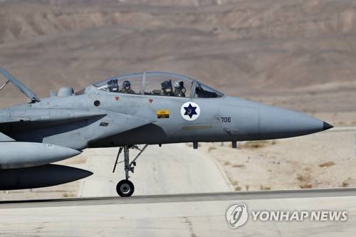 epa09545415 A Israeli 15-F aircraft landing at the Israeli airbase of Ovda in the Negev Desert near the southern Israeli city of Eilat, Israel, during the "Blue Flag" exercise on 24 October 2021. The fifth "Blue Flag" exercise is a large-scale international aerial exercise, which takes place once every two years. The purpose of the exercise is to simulate challenging combat scenarios and coalition flight, in the most realistic way. The current exercise is the largest and most advanced exercise to date, in which eight countries participate in the practice of combining 4th generation aircraft with 5th generation (35-F) aircraft, which expands the capabilities of the Israeli Air Force on the battlefield, with air cooperation including dealings. EPA/ATEF SAFADI
