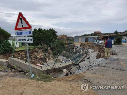 epa09545422 A view of damage caused by bad weather in Scordia, Sicily Island, southern Italy, 25 October 2021. The body of a 67-year-old man, who was caught up in flash floods on 24 October in the Sicilian town of Scordia, has been found, firefighters said on the day. The man's 54-year wife is still missing and rescuers are searching for her. The married couple got out of their car on 24 October, when mud and floods inundated the town near Catania and they were swept away by the fury of the water, an eyewitness said. The southern Italian regions of Sicily, Calabria, Basilicata and Apulia remained on alert on the day due to the extreme climate events. EPA/ORIETTA SCARDINO