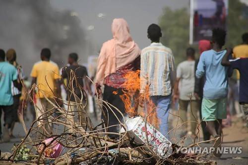 Pro-democracy protesters use fires to block streets to condemn a takeover by military officials in Khartoum, Sudan, Monday Oct. 25, 2021. Sudan’s military seized power Monday, dissolving the transitional government hours after troops arrested the acting prime minister and other officials. The takeover comes more than two years after protesters forced the ouster of longtime autocrat Omar al-Bashir and just weeks before the military was expected to hand the leadership of the council that runs the African country over to civilians. (AP Photo/Ashraf Idris)