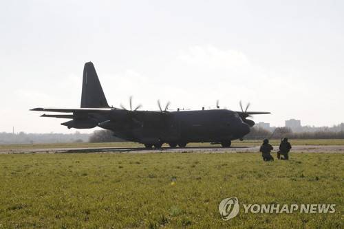 epa09545446 A view of the US Air Force special operation aircraft MC-130J Commando II landing during a landing exercise at Spilva airfield in Riga, Latvia, 25 October 2021. The US Air Force special operation aircraft MC-130J Commando II took part in a landing exercise demonstrating the rapid delivery and deployment of US Army High Mobility Artillery Rocket System (HIMARS). The aim of the exercise is to demonstrate the collective defense capabilities and the ability of the Allies to quickly deliver fire support capabilities to Latvia, providing support to the National Armed Forces in national defense. EPA/TOMS KALNINS