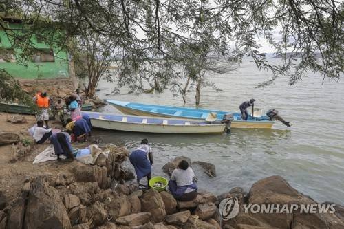 epa09545460 A group of women prepare their fish before going to sell them outside their homes at the shore of Kampi ya Samaki, after the place was flooded causing crocodiles and hippos to come close to their homes due to unprecedented rise of water levels in Lake Baringo in Baringo County, Kenya, 21 October 2021 (issued 25 October 2021). Thousands of people have been displaced from their homes and places of work, some have already been forced to migrate to neighboring towns due to the flooding situation in all eight lakes in Kenya's Rift Valley in which experts note has not been witnessed in the last 50 years. And some of the reasons they say include but are not limited to an unprecedented increase in annual rainfall over the past decade widely attributed to climate change, pressure on land, and siltation. Some of the lakes have nearly doubled in size, drowning homes, schools, clinics, pastureland, businesses, farms, and churches. Environmental organizations have kept calling on world leaders to put more effort into addressing the effects of climate change as the UK prepares to host the 26th UN Climate Change Conference of the Parties (COP26) in Glasgow from 31 October to 12 November 2021. EPA/Daniel Irungu