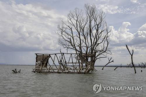epa09545480 Remains of the submerged Roberts Camp at Kampi ya Samaki, after it was flooded due to unprecedented rise of water levels in Lake Baringo in Baringo County, Kenya, 21 October 2021 (issued 25 October 2021). Thousands of people have been displaced from their homes and places of work, some have already been forced to migrate to neighboring towns due to the flooding situation in all eight lakes in Kenya's Rift Valley in which experts note has not been witnessed in the last 50 years. And some of the reasons they say include but are not limited to an unprecedented increase in annual rainfall over the past decade widely attributed to climate change, pressure on land, and siltation. Some of the lakes have nearly doubled in size, drowning homes, schools, clinics, pastureland, businesses, farms, and churches. Environmental organizations have kept calling on world leaders to put more effort into addressing the effects of climate change as the UK prepares to host the 26th UN Climate Change Conference of the Parties (COP26) in Glasgow from 31 October to 12 November 2021. EPA/Daniel Irungu