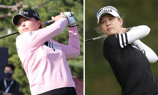 고진영(왼쪽 사진)이 26일 오전(한국시간) 발표된 여자골프 세계랭킹에서 1위를 되찾았다. 고진영의 랭킹포인트는 9.36, 1위에서 2위로 내려앉은 넬리 코르다(미국·오른쪽)는 9.34다.