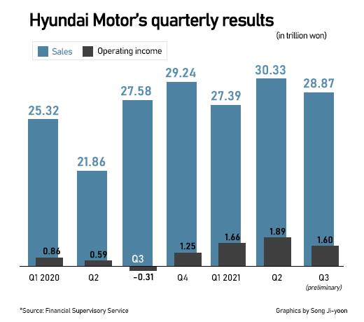Hyundai Motor Q3 OP dn 14.8%, shaves capex as chip shortage crisis protracts