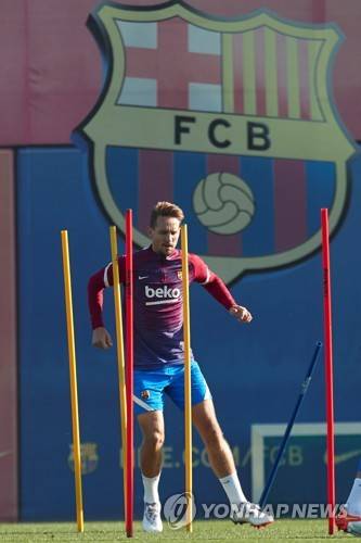 epa09546525 FC Barcelona's Dutch striker Luuk de Jong during a training session at Joan Gamper Sports City in Barcelona, Catalonia 26 October 2021 in preparation for their next LaLiga match against Rayo Vallecano. EPA/Alejandro Garcia