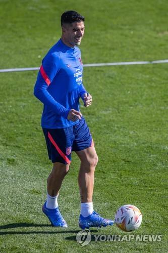 epa09546526 Atletico Madrid's Uruguayan striker Luis Suarez participates in his team's training session at Wanda Sports City in Majadahonda, near Madrid, central Spain, 26 October 2021. EPA/Rodrigo Jiménez