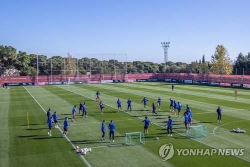 epa09546538 Atletico Madrid players during a team training session at Wanda Sports City in Majadahonda, near Madrid, central Spain, 26 October 2021. EPA/Rodrigo Jimenez