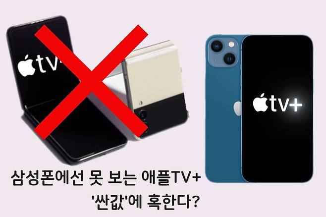 특히, 삼성 스마트폰 이용자들에겐 ‘무용지물’이다. ‘애플TV+’는 애플 앱마켓 ‘앱스토어’에서만 설치가 가능하기 때문이다. 안드로이드를 사용하는 삼성, LG 등 스마트폰은 지원하지 않는다.