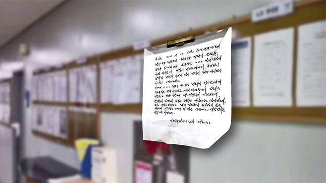 피해 여직원들이 노동조합을 통해 항의하자 사측이 피해자들과 수차례 면담 끝에 사과문을 붙인 거라는데, 정작 사과문은 금, 토, 일 딱 사흘간 붙었습니다.