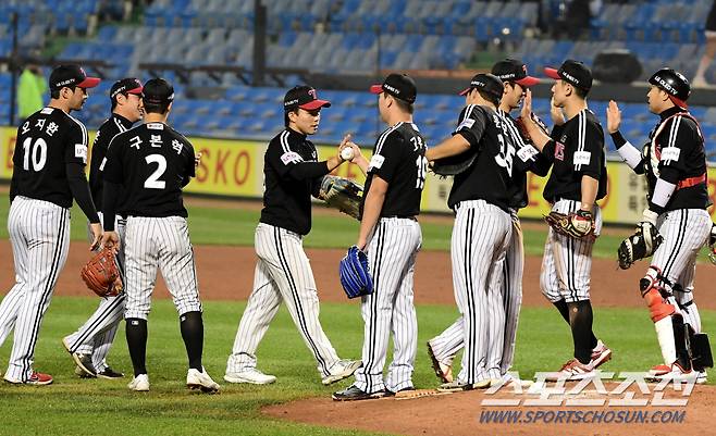 26일 대전 한화생명이글스파크, KBO리그 LG와 한화 경기. LG가 4대0으로 승리하며 8경기 만에 승리를 거뒀다. 선수들이 기쁨을 나누고 있다. 대전=정재근 기자 cjg@sportschosun.com/2021.10.26/