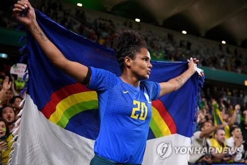 epa09546756 Duda of Brazil greets supporters following the international women's soccer friendly match between Australia and Brazil at CommBank Stadium in Sydney, New South Wales, Australia, 26 October 2021. EPA/DAN HIMBRECHTS AUSTRALIA AND NEW ZEALAND OUT