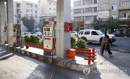 epa09546767 An Iranian woman walks next to an out of service petrol station in Tehran, Iran, 26 October 2021. Petrol stations across Iran were reportedly out of service and could not sell fuel after the system handling fuel subsidies sales was disrupted in what official sources said was due to a 'cyberattack'. EPA/ABEDIN TAHERKENAREH