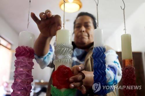 epa09546846 The artisan Maria del Rocio Perez makes scaled candles on the occasion of the Day of the Dead in the municipality of Tochimilco, Puebla state, Mexico on 23 October 2021 (issued 26 October 2021). Flaked wax candles have the power to illuminate the souls at the altars for the Day of the Dead. And in the Mexican municipality of Tochimilco, dozens of artisans keep the tradition alive by making thousands of these objects that light, year after year, the path of those who visit the houses on these dates. EPA/Hilda Rios