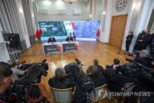 epa09546881 Polish Defence Minister Mariusz Blaszczak (L, rear) and Polish Deputy Prime Minister and leader of the Law and Justice (PiS) rulling party Jaroslaw Kaczynski (R, rear) attend a press conference in Warsaw, Poland, 26 October 2021. Poland plans to increase the size of its armed forces to 250,000 through a new national defence act that was unveiled on 26 October. The 'defence of the fatherland act,' which was presented at a press conference hosted by Polish Defence Minister Mariusz Blaszczak and and Deputy Prime Minister Jaroslaw Kaczynski aims to double the size of the nation's armed forces. According to NATO, Poland currently has 99,000 people under arms in the army, navy and air force. EPA/WOJCIECH OLKUSNIK POLAND OUT